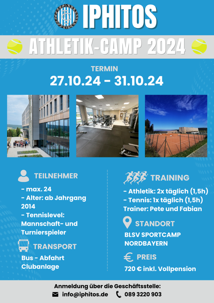 MTTC Iphitos e.V. is offering a combined athletics and tennis camp for children and teenagers during the fall break. The focus of the camp is on the following content: