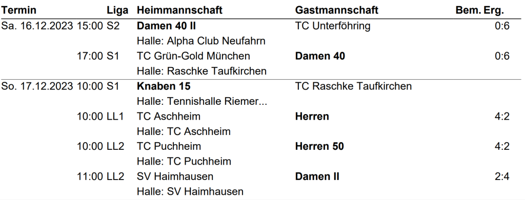 Results 16./17.12.2023