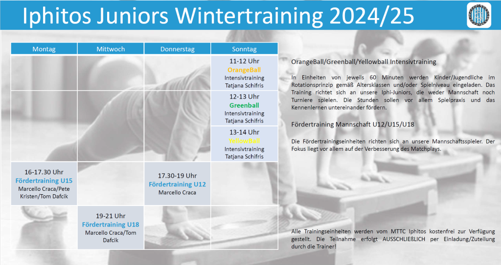 The program includes team honors for U8-U12, barbecue & drinks, music and much more! All Iphi Juniors up to the age of 12 who are members of Iphitos are invited, including non-team players!