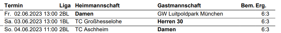 Ergebnisse 02.06. – 04.06.2023