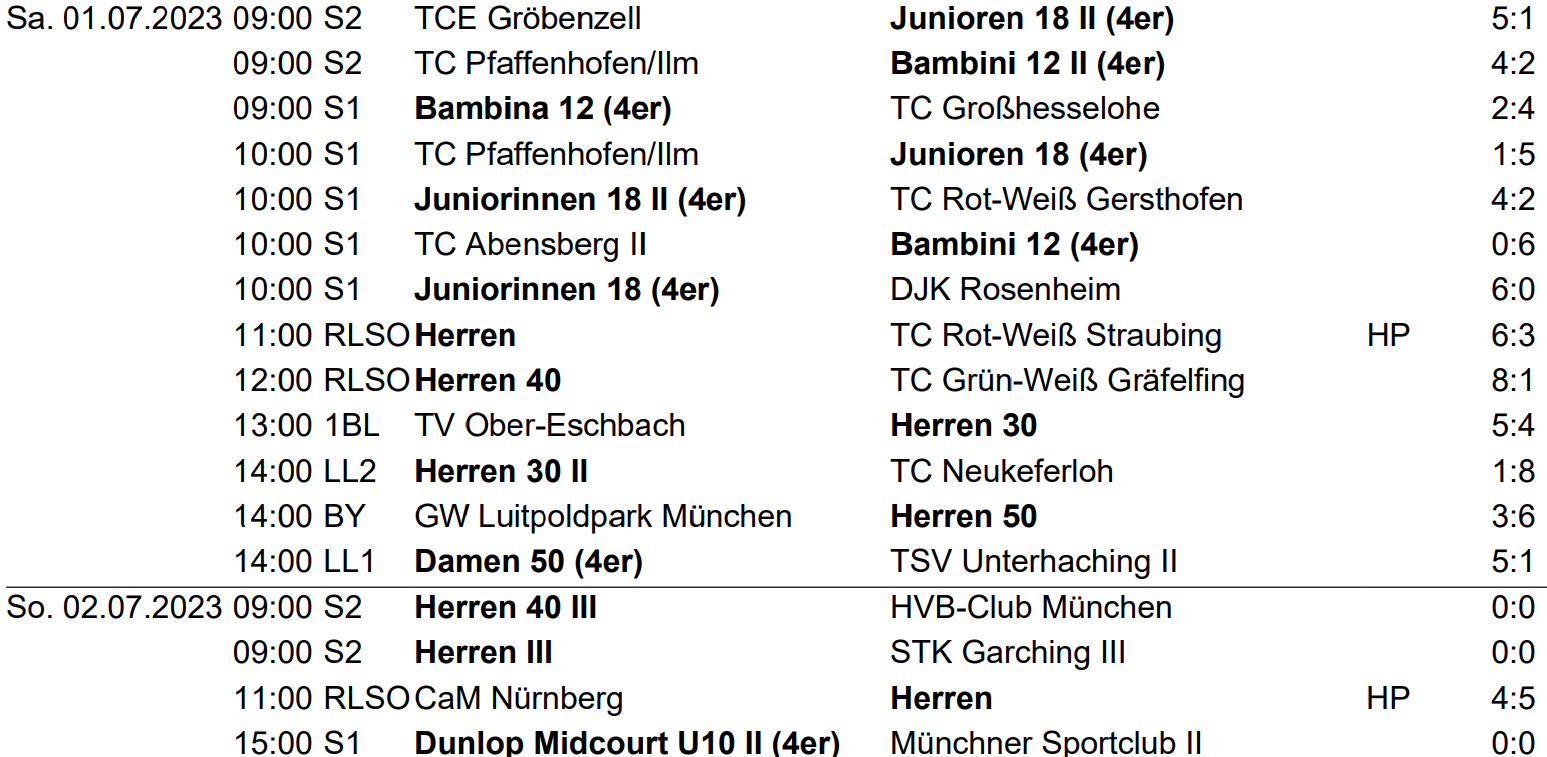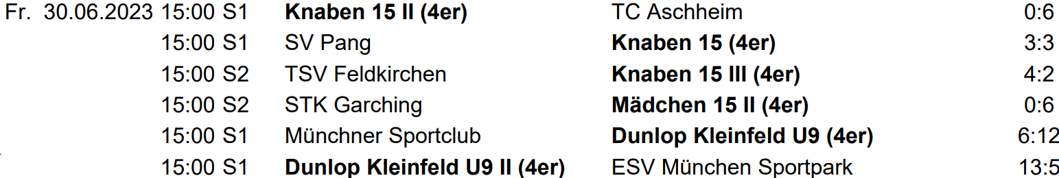 Ergebnisse 30.06. – 02.07.2023