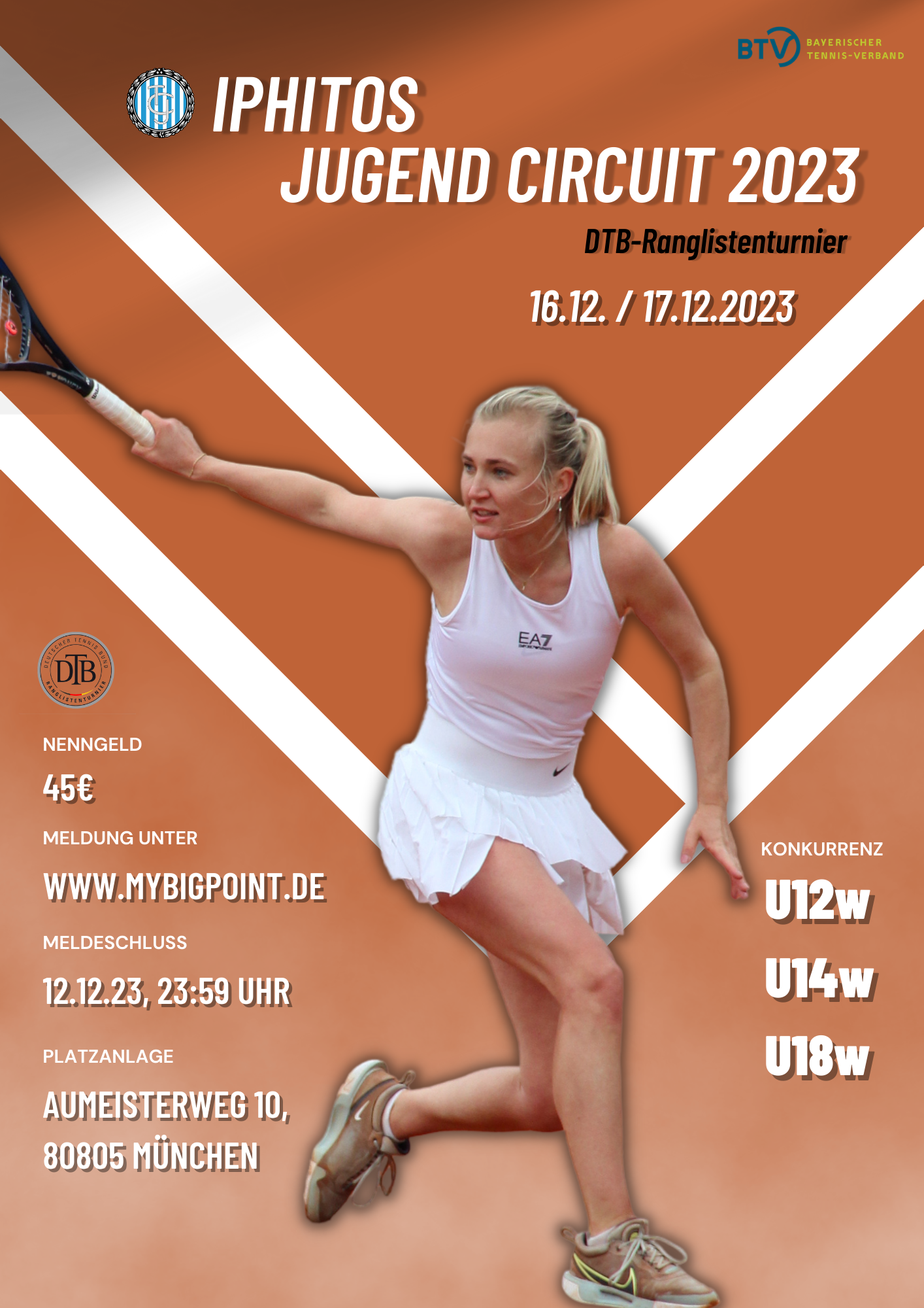 Vom  11.11.2023  bis zum 03.03.2024  findet unsere  Turnierserie, der Iphitos Junior Circuit 2023/24,  bei uns auf der Anlage statt! Wir freuen uns  in der Wintersaison wieder an insgesamt fünf Terminen DTB Ranglistenturniere, Kategorie J-4, anbieten zu können.