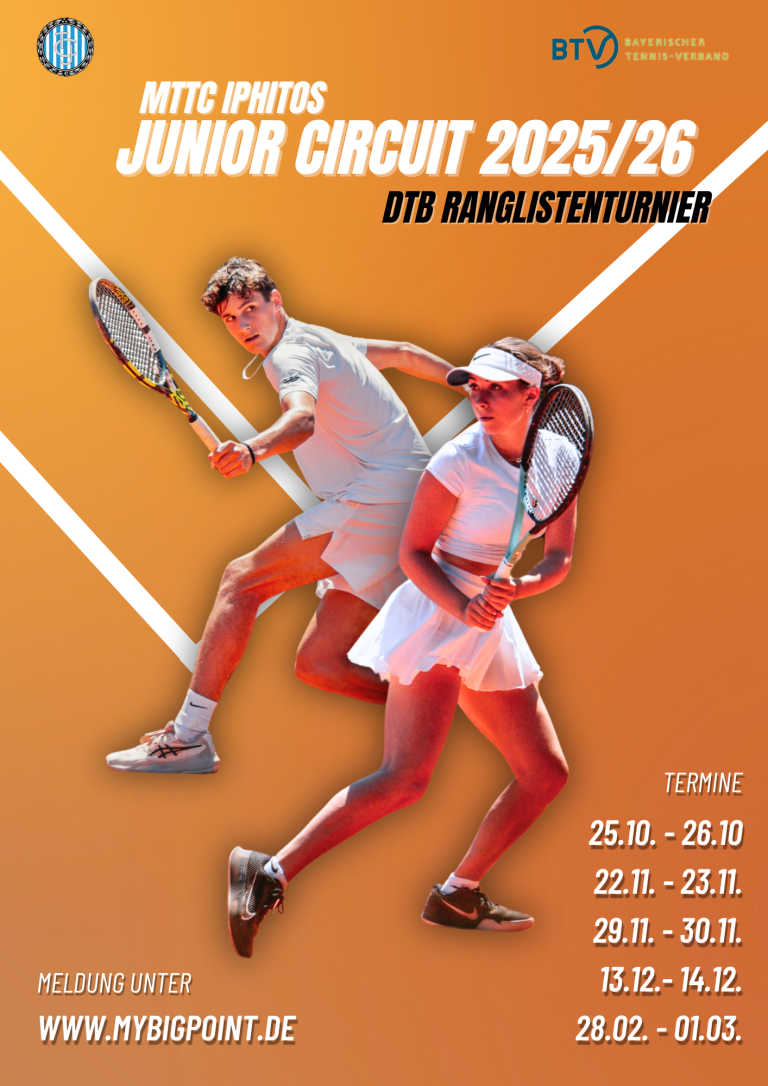 Der MTTC Iphitos e.V. bietet zwischen dem 25.11.2025 und dem 14.12.2025 an insgesamt 4 Terminen DTB Ranglistenturniere an.