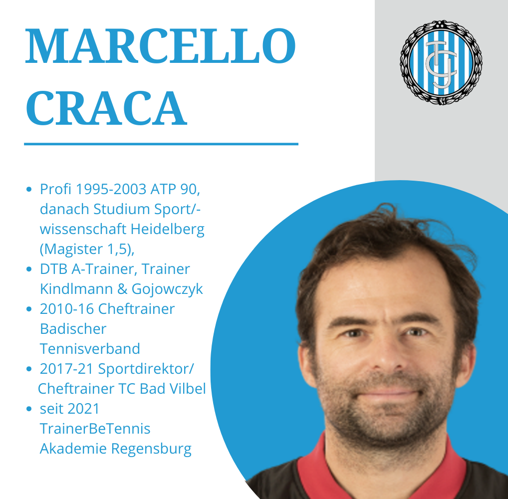 Marcello Craca bringt eine beeindruckende internationale Erfahrung und Fachkenntnis mit. Als ehemaliger Profispieler (ATP 90) und erfahrener Coach, unter anderem als Cheftrainer des Badischen Tennisverbands (Schwerpunkt: ITF U15/U18), Trainer von Dieter Kindlmann und Peter Gojowczyk sowie als Sportdirektor/Cheftrainer des TC Bad Vilbel (Aufstieg Damen 1. Bundesliga), hat er bereits erfolgreich zahlreiche Spielerinnen und Spieler auf höchstem Niveau betreut. Seine Leidenschaft für den Tennissport und sein Engagement für die Entwicklung junger Talente machen den studierten Sportwissenschaftler zur idealen Besetzung für die Position des Headcoachs im Iphitos.