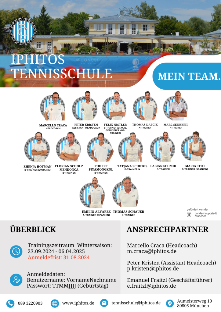 • Die Anmeldung erfolgt über Avida online: www.iphitos.de/tennisschule