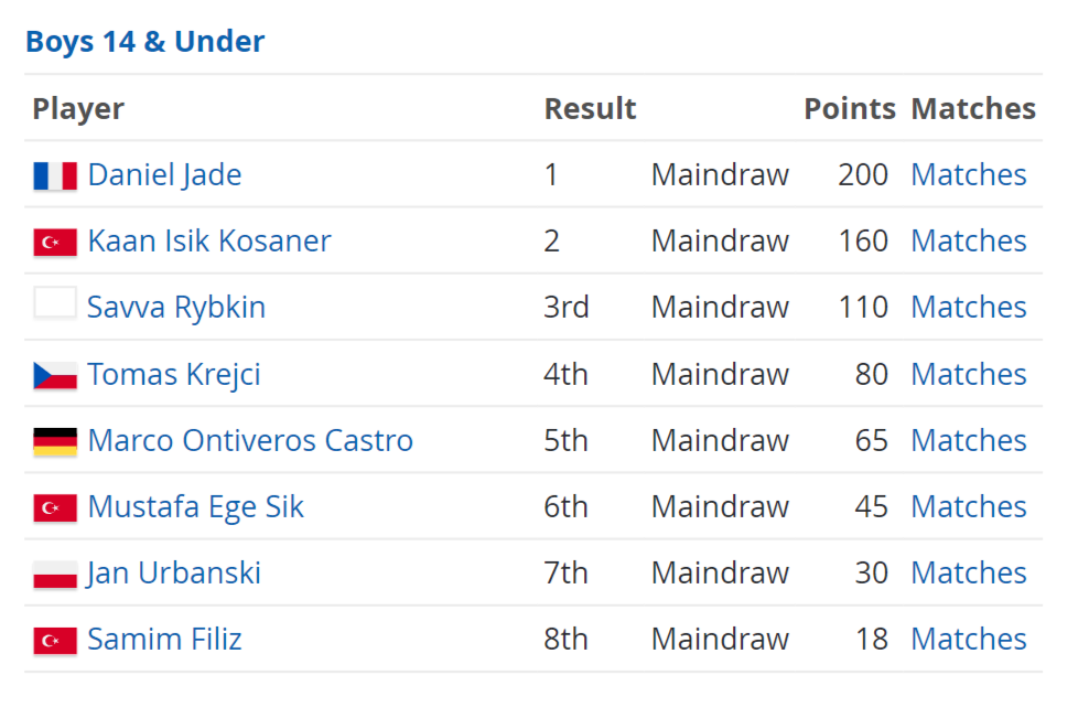 Das endgültige Ergebnis des Tennis Europe Junior Masters 2023 in Monte-Carlo lautet wie folgt: